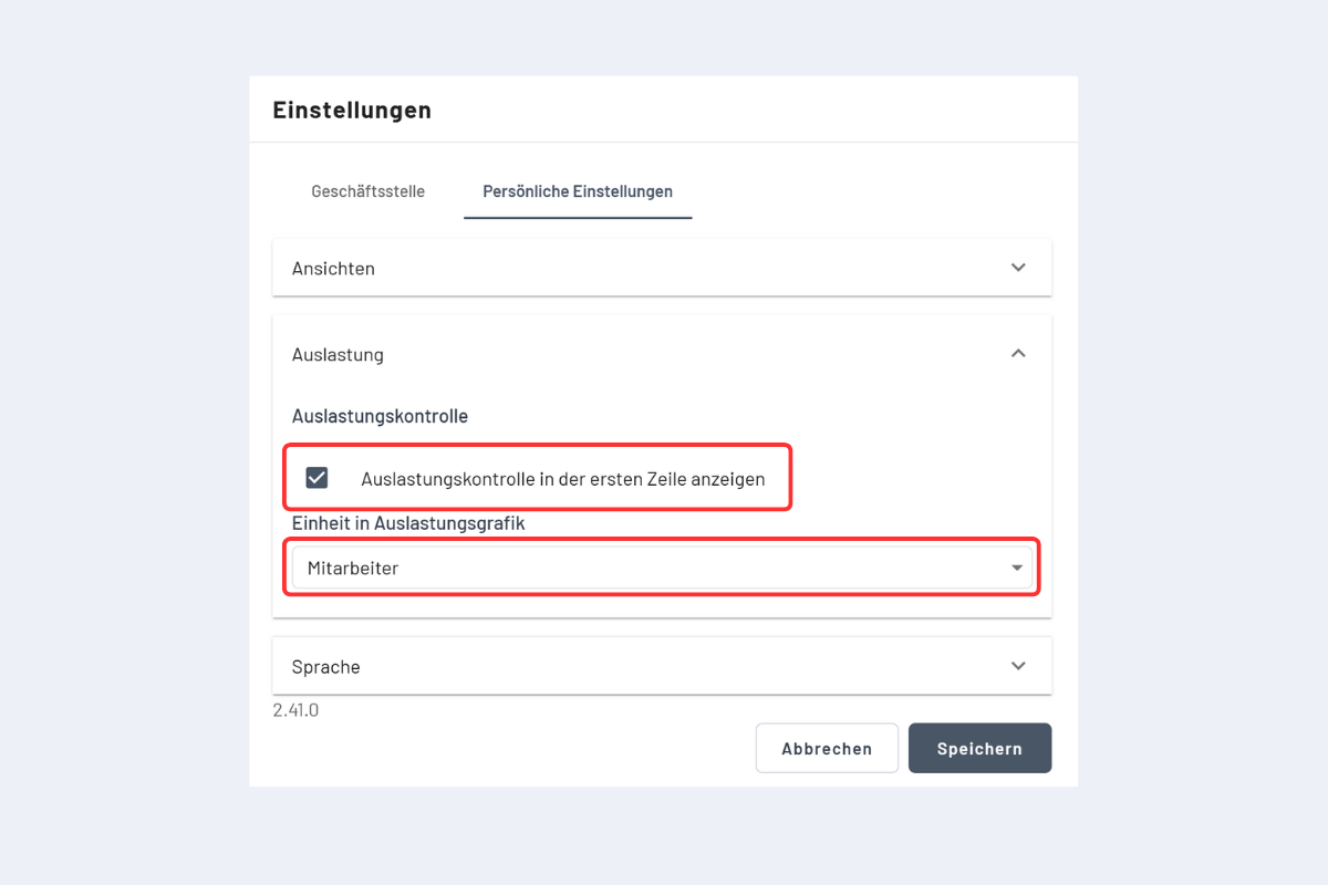 This option can be turned on or off in the Settings under the Personal Settings tab (see Fig. Utilization Control Settings). This function is limited to the weekly, monthly, and yearly views.