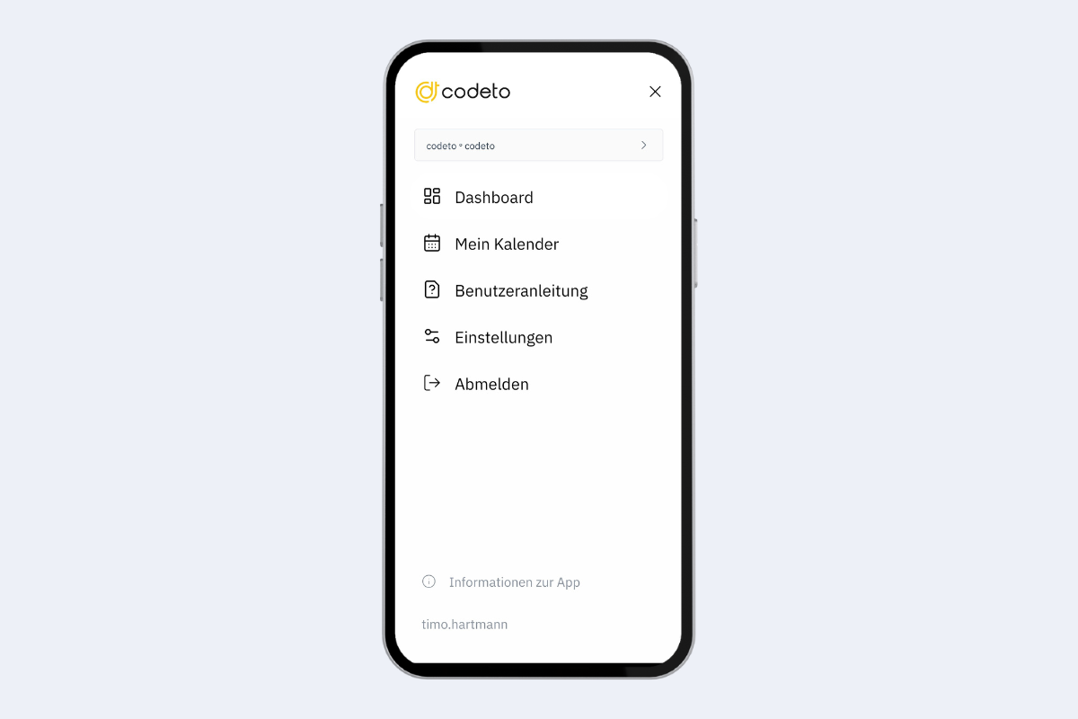 Après la connexion, vous arrivez directement sur le tableau de bord. Vous voyez la semaine en cours, vos affectations de la semaine ainsi que les absences à venir. En appuyant sur une entrée, vous ouvrez le calendrier avec les détails.