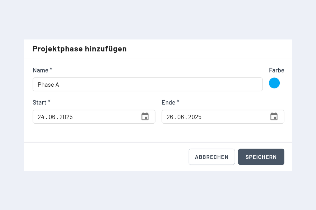 Puoi aggiungere fasi quando crei un nuovo progetto o successivamente su progetti esistenti. Apri il progetto desiderato: si apre una finestra per modificare i dati del progetto.